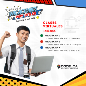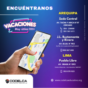 CODELCA: VACACIONES MUY ÚTILES 2025 La Asociación Educativa de Metodología Intelectual CODELCA, con 35 años de servicio en la región Arequipa, preocupado en solucionar problemas […]